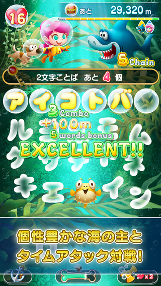 本作中,玩家将在广阔的海洋中挑战100个关卡,通过泡沫中的文字解答问题,打倒BOSS向着终点进发。